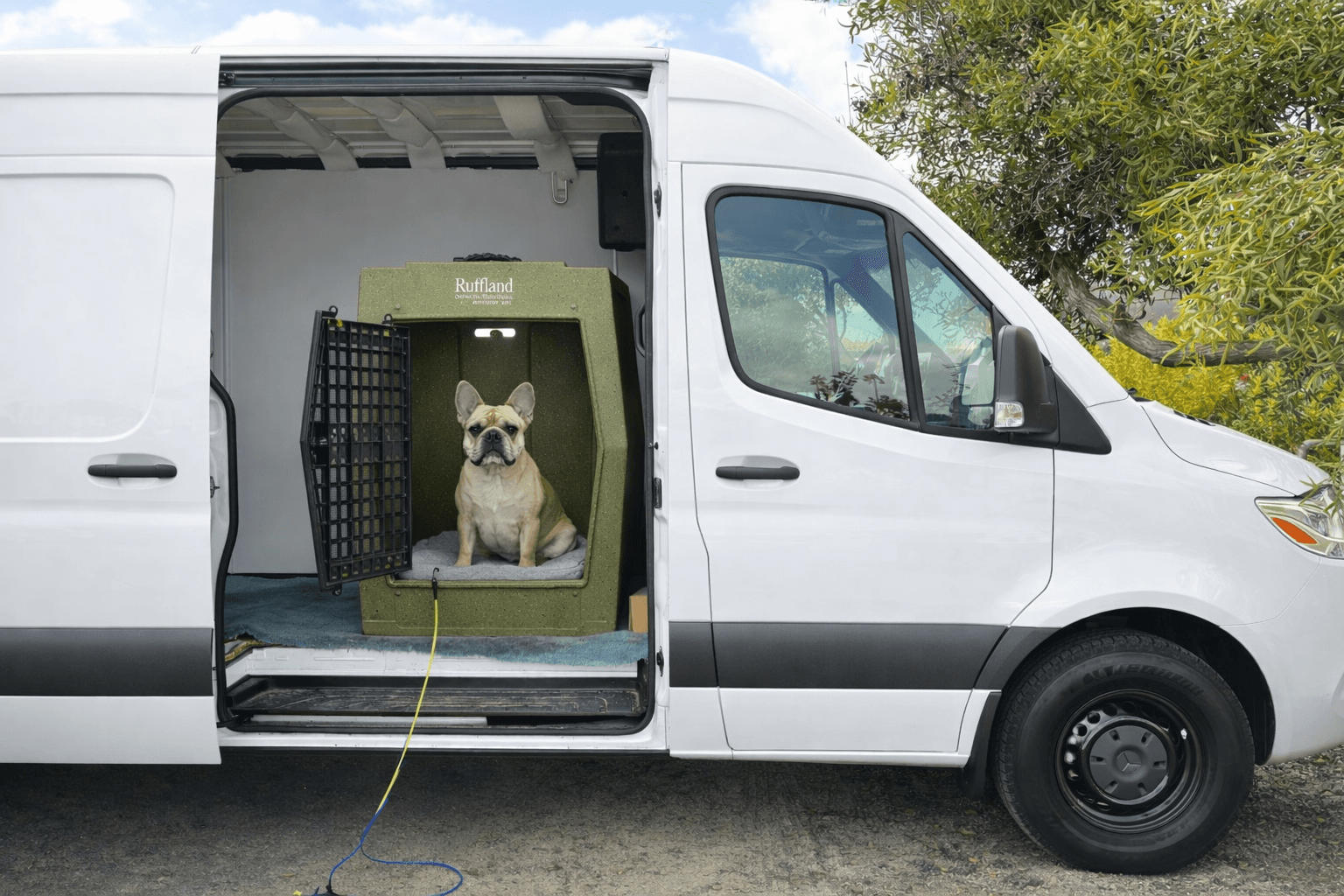Each pet rides in a secure, sanitized crate for maximum comfort.